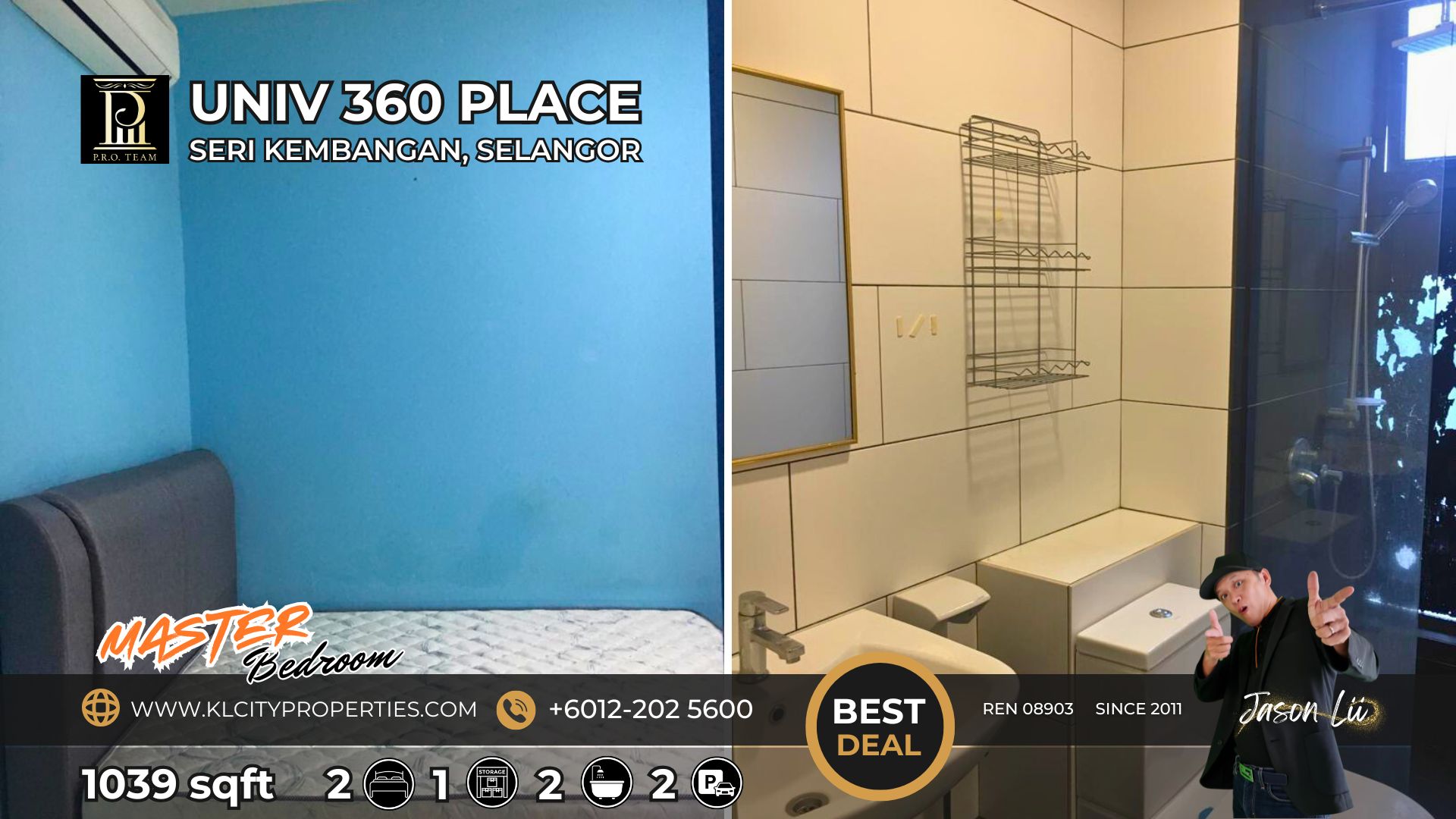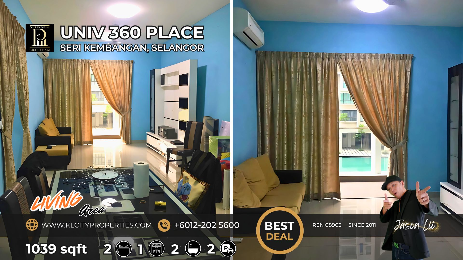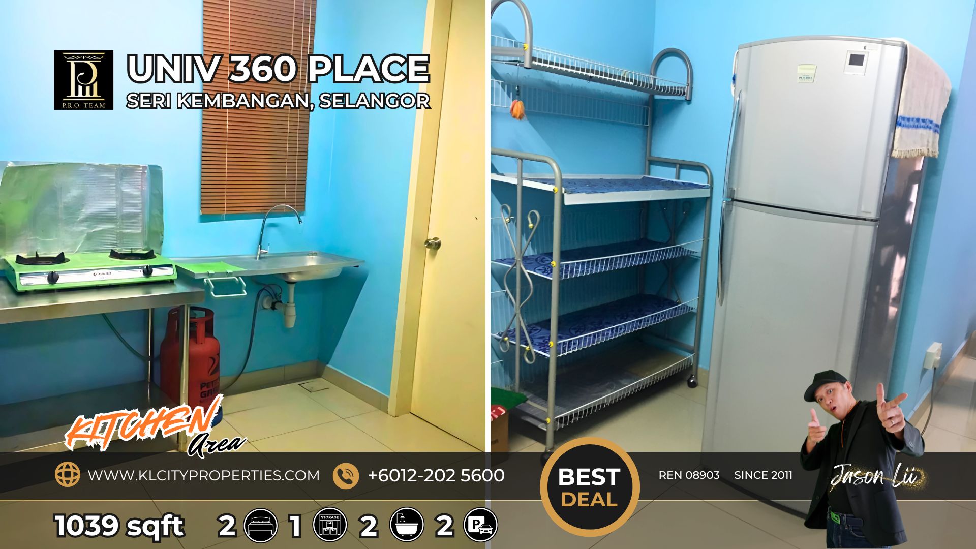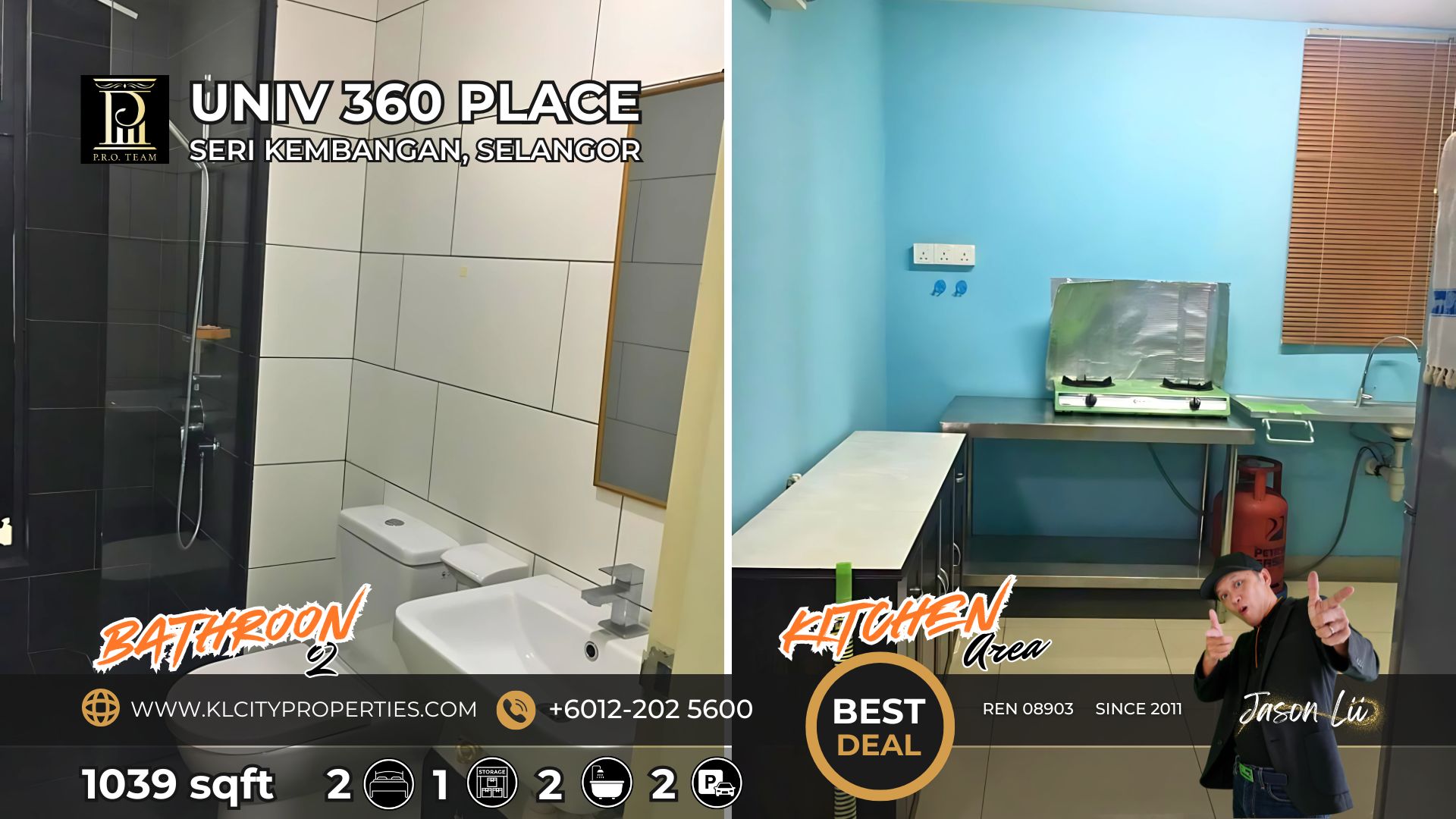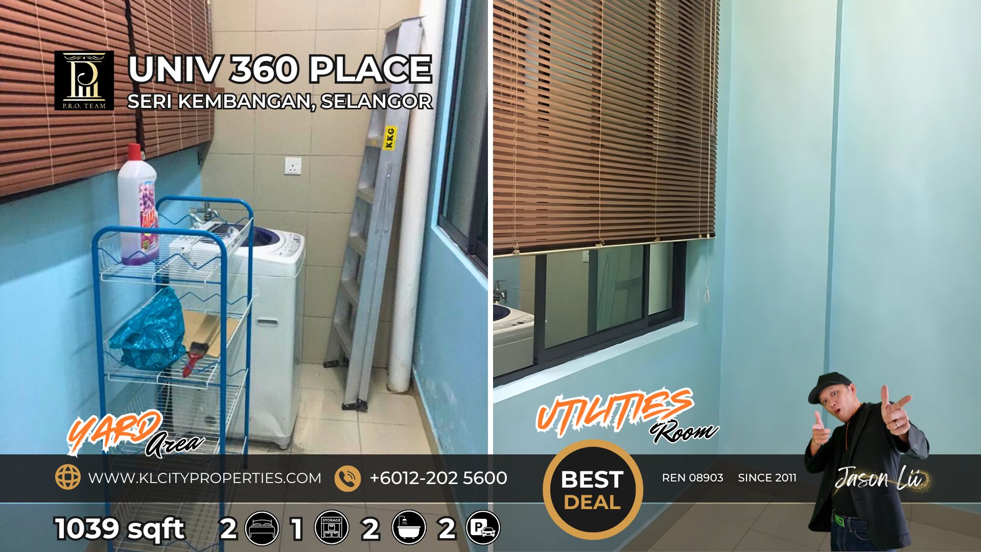 ✅ Spacious 1039sqft Layout: 2 bedrooms + 1 utility room, 2 bathrooms, and 1 dedicated car park lot.