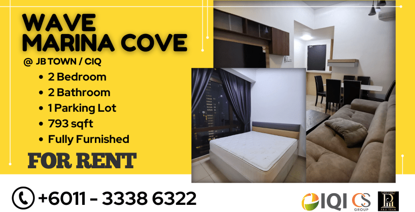 Discover the perfect blend of comfort and convenience in this stunning service residence at Wave Marina Cove, just few minutes away from key destinations like CIQ and Mid Valley Southkey. This fully furnished 2-bedroom, 2-bathroom unit offers 793 sqft of well-designed space, complete with a mid-floor location for optimal views and tranquility. With a designated car park and premium amenities, this is an ideal home for those seeking modern living in a prime location. Donโt miss the chance to rent this beautiful unit!